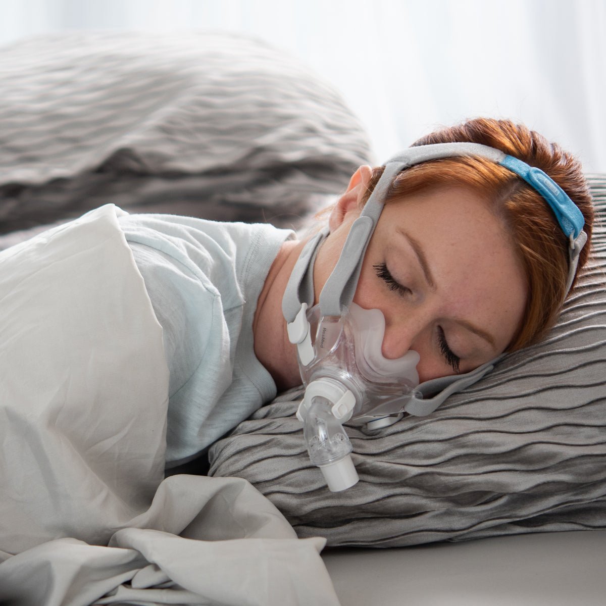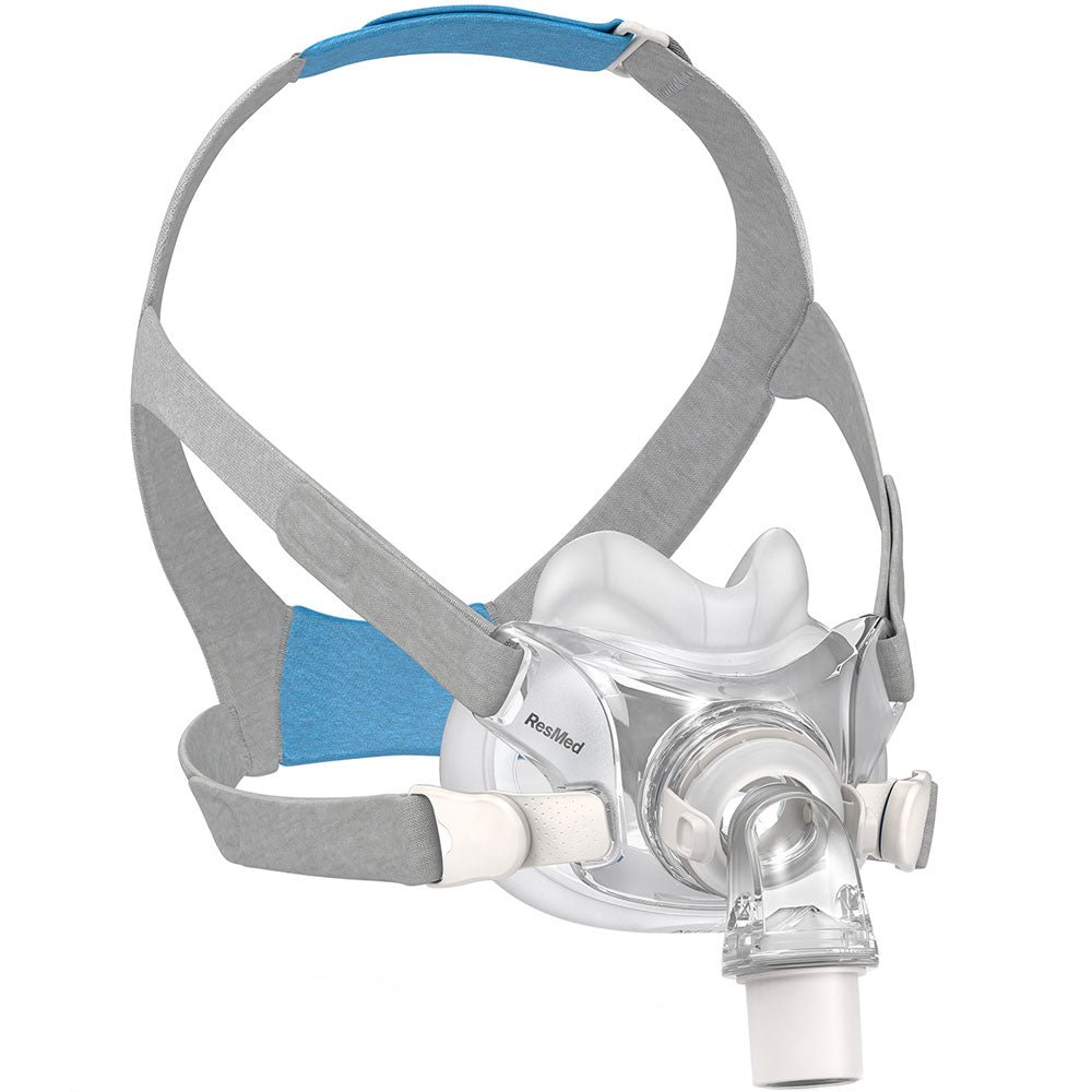 The ResMed AirFit F30 is a compact, contemporary full face mask designed for comfort and convenience. Its low-profile cushion helps reduce facial marks and irritation while allowing you to comfortably wear glasses in bed.
