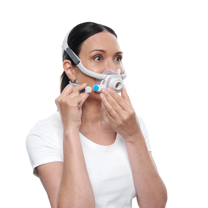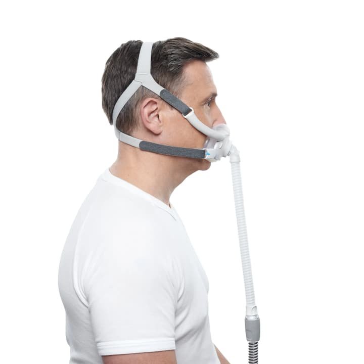The AirFit™ F40 Mask System delivers exceptional comfort in a sleek, minimal-contact design. As ResMed’s smallest tube-down full face mask, it fits under the nose to reduce facial pressure and allows natural movement throughout the night for a more restful, uninterrupted sleep.