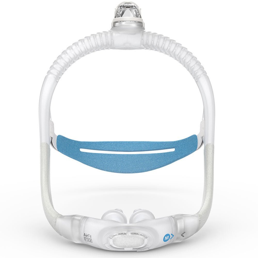 Experience unmatched comfort with the ResMed AirFit™ P30i nasal pillows mask. Its top-of-head tube keeps out of the way for side-sleeping and freedom of movement, while QuietAir™ vent technology reduces noise by up to 80%* for a more peaceful night.