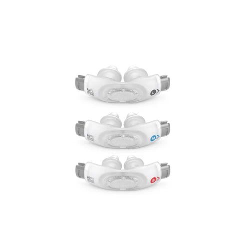 Replacement nasal pillows for the AirFit™ P30i Mask System. Available in Small, Medium, and Large, with the size clearly indicated on the inside of each pillow.